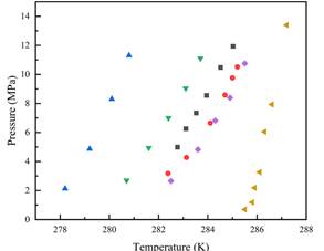纯氢水合物虽具有 5.3wt% 的高储氢容量,但需 250-600 MPa 超高压与 249K 低温的极端条件,难以工业化应用。热力学添加剂可降低氢水合物形成压力,但现有添加剂(如四氢呋喃 THF、环戊烷 CP)的相平衡调控效果有限,且环氧类化合物作为含氧官能团添加剂的作用机制尚不明确,缺乏系统的相平衡数据支撑,制约了温和条件下高效储氢体系的开发。