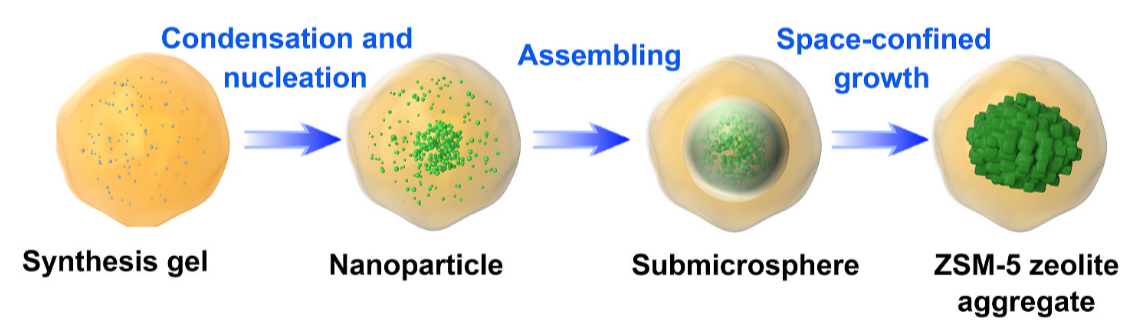 相关工作成果以“ZSM-5聚集体的简便合成和无介孔剂途径的机理洞察”(Facile synthesis and mechanistic insights into ZSM-5 aggregates via a mesoporogen-free route)为题发表于国际期刊《Journal of Solid State Chemistry》。