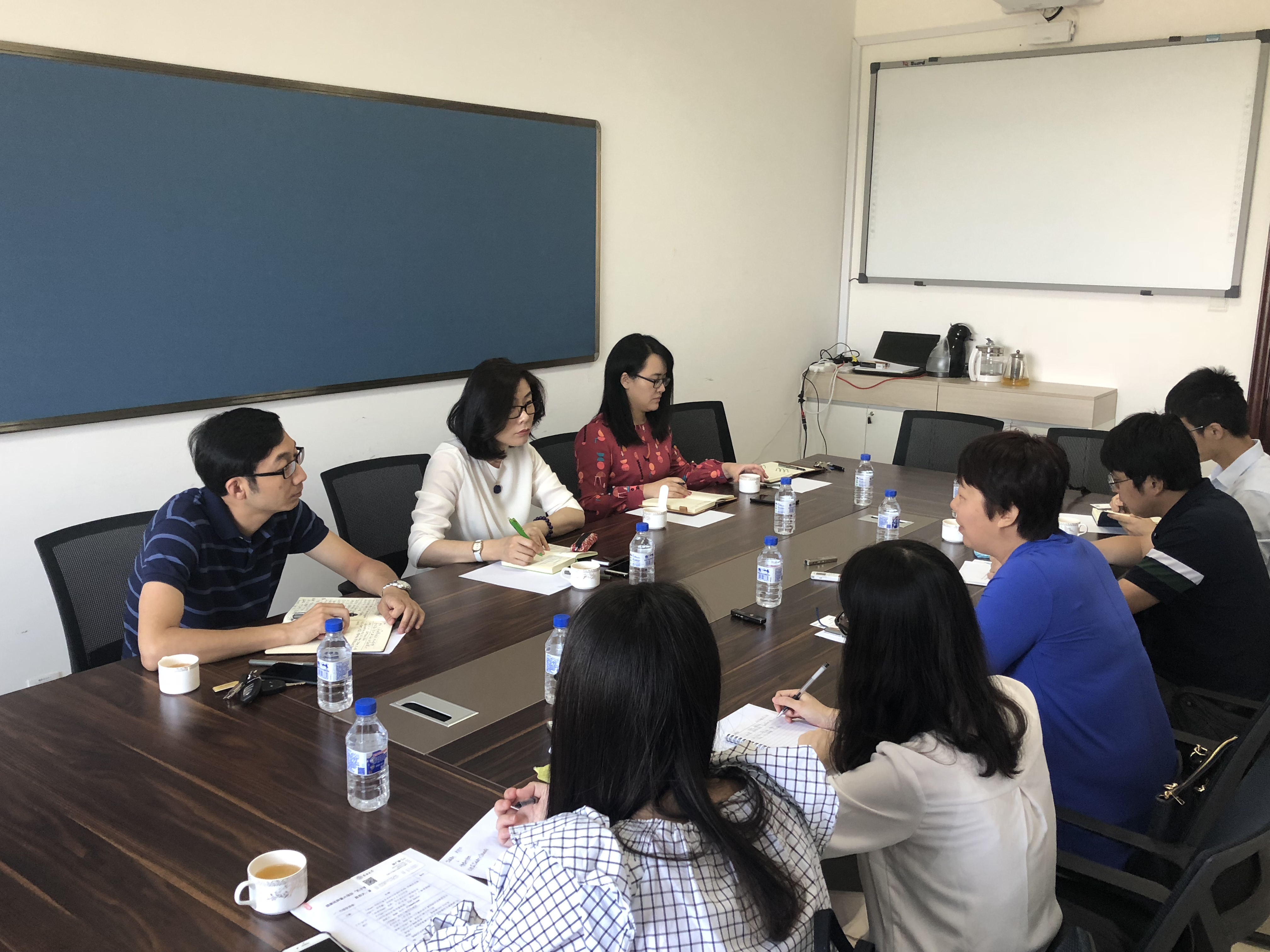 调研团队与吉大国际教育学院领导合影 5月22日至23日,研究团队对此行的第二站——浙江大学进行了调研。浙江大学是美国罗德岛大学孔子学院的中方合作院校。团队成员对浙江大学国际教育学院孔子学院办公室刘辉主任、孔院办工作人员刘香露、汉语教师吴越、张兴刚进行了深入访谈。刘主任介绍了浙江大学合建的三所孔院的基本情况,其他老师根据在孔子学院工作的实践经验,就跨文化适应、孔子学院跨文化冲突等问题进行了讨论。