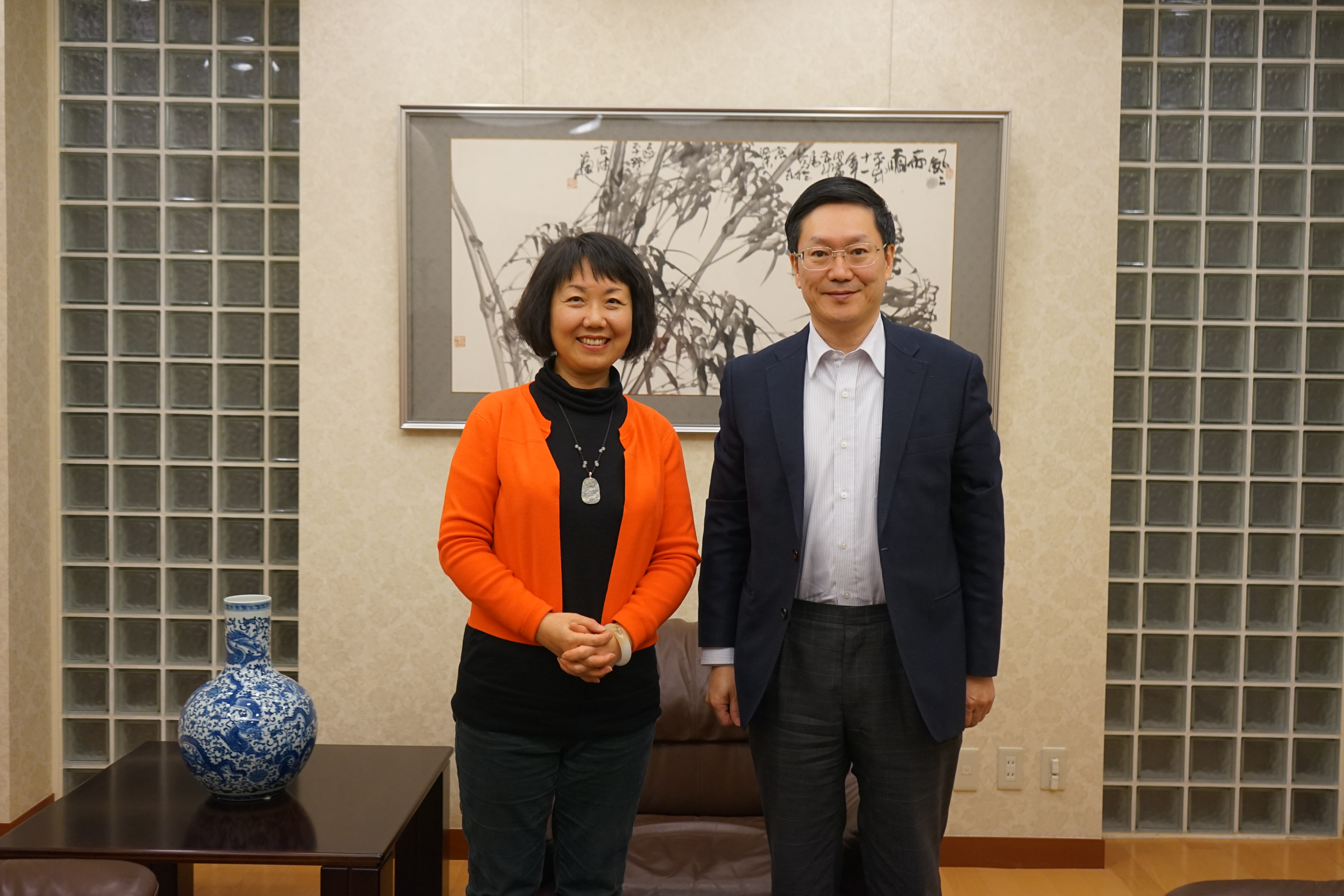 安然教授与工学院大学孔子学院中外方院长相互赠书 第三站,安然教授带领团队拜见了中华人民共和国驻日本大使馆教育处的胡志平公参。胡公参谈了日本孔子学院的情况,总体发展都是稳扎稳打,顺势推进。胡公参在日本工作多年,对日本的了解剖析非常深刻,也为调研团队的研究打开了新的视野。
