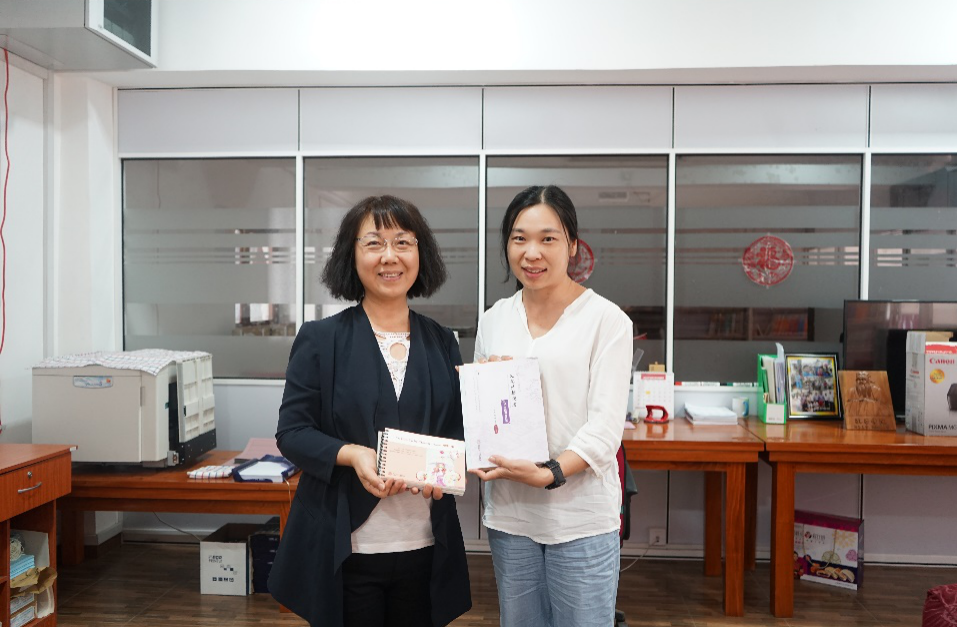 安然教授与中方院长魏玛合影 调研团队于12月25日至26日期间对泰国朱拉隆功大学孔子学院和中国国家汉办驻泰国代表处进行了访问。泰国朱拉隆功大学孔子学院(是在诗琳通公主的亲自倡导下,由中泰两国的最高学府——北京大学与朱拉隆功大学合作建立,两次被国家汉办评为“先进孔子学院”,并被授予“全球示范性孔子学院”称号。课朱大孔子学院积极开展汉语推介工作,致力于科研工作和中泰文化交流,设置了泰国王宫官员汉语培训班、移民局官员培训班等课程。除汉语教学以外,朱大孔子学院积极开展“留学中国”咨询服务,认真做好孔子学院奖学金推荐工作,每年推荐20多名泰国学生去中国攻读硕士、博士学位和短期进修。此外,自2009年开始,朱大孔院每年都与北京大学合作,举办北京大学赴泰招生宣讲会招收留学生,选拔成绩优异的泰国高中毕业生为其提供奖学金到北京大学留学深造。 12月25日调研团队首先参观了朱拉隆功大学诗琳通图书馆,据介绍该图书馆为在朱大学习中文的学生提供了巨大帮助。随后调研团队与中方院长缪蓉、2位公派教师、3位本土教师进行了深入访谈。