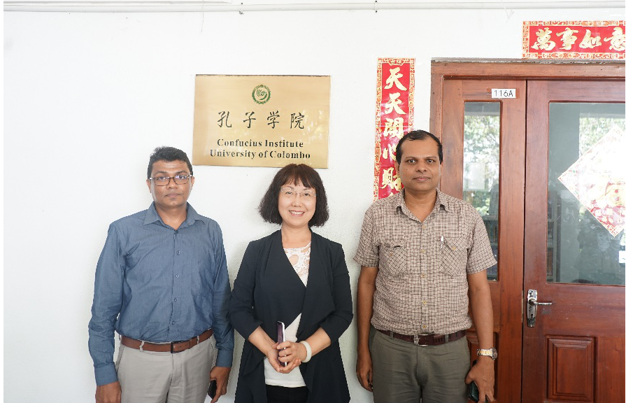 调研团队与华人华侨合影 12月19至23日期间安然教率领调研团队拜访了斯里兰卡科伦坡大学,该孔子学院由北京外国语大学、红河学院与斯里兰卡科伦坡大学共同建设。斯里兰卡是佛教的国度,科大孔院与斯里兰卡佛教部合作,专门为斯里兰卡僧人开设了中文课程,旨在为僧人学员们学习中文提供便利,并希望能够以此促进中斯两国佛教文化的交流。孔子学院积极从职业教育入手,创新教学形式,拓展“汉语+职业”功能,做好汉语及中国文化推广工作,不断增强中斯两国民间交流,巩固中斯两国友谊。调研团队成员对科伦坡大学孔子学院中方院长黄薇、外方院长魏玛,2位中方教师,2位志愿者进行了访谈,围绕跨文化适应、职业发展、志愿者自我成长等问题进行了深入交流。中方院长黄薇讲述了自己在2019年4月份斯里兰卡爆炸案期间对孔子学院的坚守与努力,而志愿者也讲述了自己与孔子学院的故事。