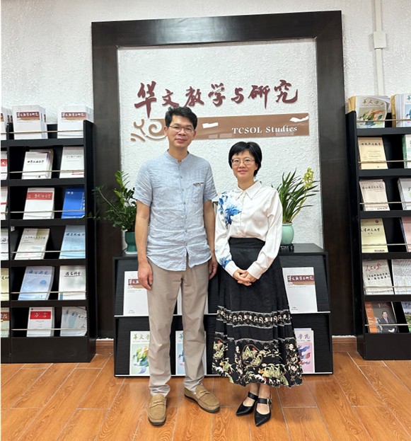 侯兴泉院长带领单韵鸣教授参观了华文学院数字人文实验室、《华文教学与研究》编辑部,介绍了学院学科建设现状、核心优势及办刊成果,重点阐述了“数智华文教育”模式探索和期刊学术影响力。