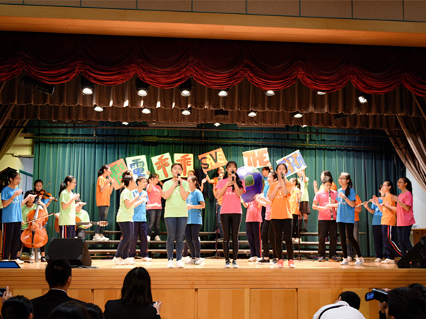3月14日上午我校赴港交流学生与部分罗中学生在罗中大礼堂进行文艺汇演。罗中校歌合唱后,我校同学也为罗中送上了我们的表演: