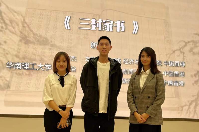 决赛以线上线下相结合的方式举行。我校3名香港学生的决赛作品为《三封家书》,通过横跨近百年的三封家书(1927年、1943年、2021年),将中国的百年历史变迁、思想变化、社会发展缩微于书信的字里行间。梁启超先生致思永(儿子)书,展现的是中华文化为人处世的哲学与智慧;胡琏将军石牌保卫战前的家书(给父亲、给妻子),展现的是军人保卫疆土的坚定信念和无畏牺牲的铮铮铁骨;出自港澳台学生之手的家书展现的是对祖国的认同感和时代的使命感。过去与现在,学者、军人与新时代的大学生,构建了一场超越时空的对话!点评嘉宾、上海戏剧学院院长黄昌永对我校代表队作品的立意表示高度肯定,认为作品体现出浓厚的历史感,展示了青年学子们的精神风貌和对传承中华美德、弘扬中华精神的关注。
