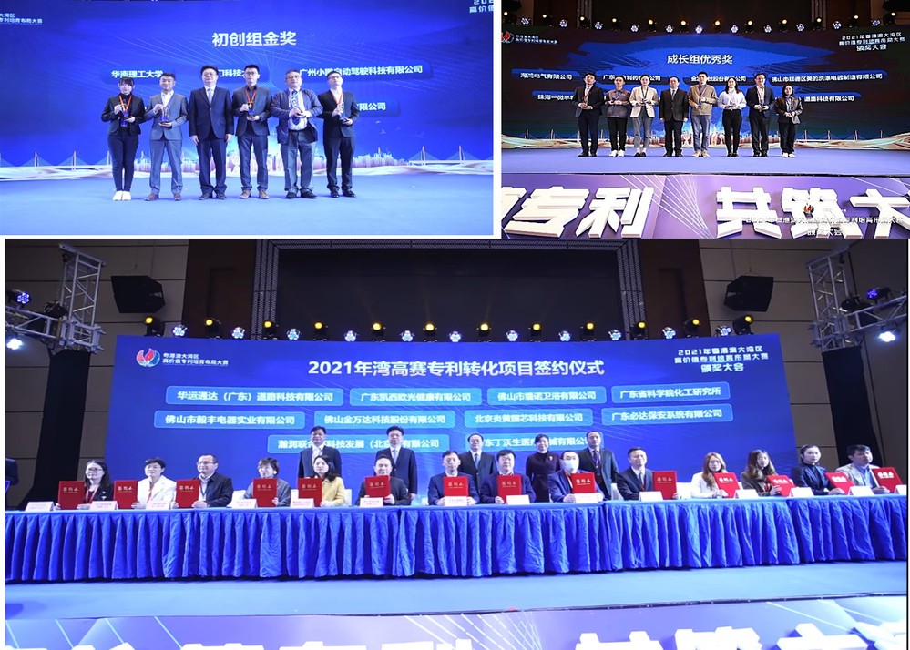 近日,第三届(2021年)粤港澳大湾区高价值专利培育布局大赛(简称2021年“湾高赛”)颁奖大会在佛山举行,表彰在决赛中获得金奖和优秀奖的35个专利项目。华南理工大学参赛专利项目继2020年第二届湾高赛之后再次荣获初创组金奖,同时华南理工大学科技园在孵企业华运通达(广东)道路科技有限公司参赛专利项目获得成长组优秀奖。