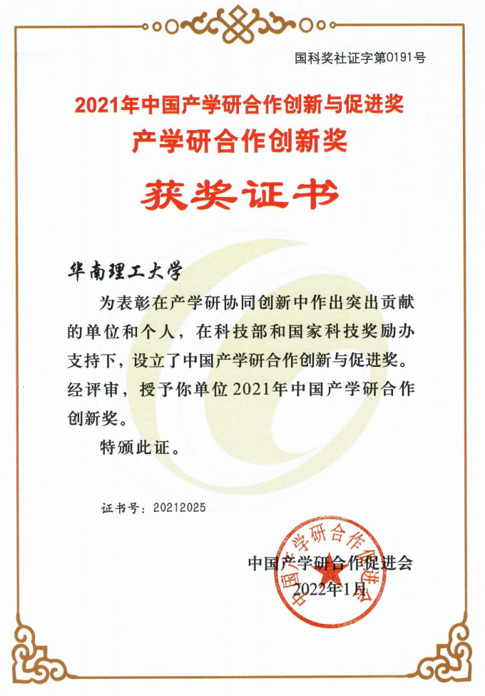 近日,中国产学研合作促进会发布《关于2021年中国产学研合作促进会产学研合作创新与促进奖的表彰决定》,华南理工大学荣获2021年中国产学研合作创新奖。