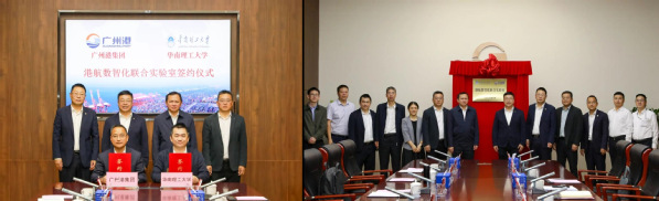 在场领导共同见证“广州港-华南理工大学港航数智化联合实验室”签约及揭牌。
