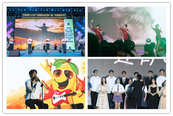 “校园里充盈着我们的笑声,也留下了我们一起走过的印记”“广州国际校区,永远是我们的家”……柠檬音乐节主体活动——柠檬音乐会,在娓娓道来的回忆视频中拉开帷幕。以多彩柠檬为背景,舞台中央大型LED屏幕灯光闪烁,左右两侧小型屏幕互动配合,与炫彩夺目的灯光交织萦绕,给师生们带来丰富而热情的体验。