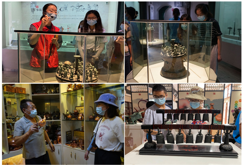 青铜是玉溪市江川区的特色产业,为了解江川区青铜器产业发展现状,实践队一行来到前卫镇新河咀村,参观青铜产业领军人物陆培兴大师的手工制铜工艺作坊,近距离接触手工青铜器,感受传统手工技艺的独特文化底蕴;聆听陆培兴大师与青铜的故事,感悟一代匠人的匠心精神。