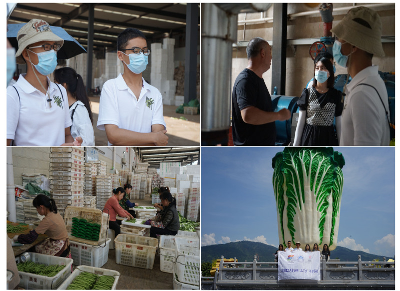 云南因其得天独厚的自然环境和气候特征,形成了蔬菜四季常绿,品种丰富多样,质优价廉的高原特色,使得云南所产蔬菜远销国内外。为调研云南蔬菜产业发展现状,实践队一行来到“云菜集团”,在集团负责人的陪同下参观了蔬菜保鲜制冷、分拣、包装车间,了解农产品的收购、初加工及销售过程。调研发现,云菜集团现已建成120个冷库,日蔬菜加工量可达4800吨,带动全市10万种植户及40万亩蔬菜直接进入国内外市场,形成以蔬菜交易市场为龙头,集种植、加工、生产、运输、销售为一体的产业化经营模式,充分发挥了集团领军作用,成为推动乡村振兴战略的龙头企业。