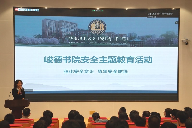 近期,国内多所高校发生校园安全事故,给师生生命财产安全造成了较大损失。安全重于泰山,为深入贯彻落实学校安全工作会议精神,切实维护师生生命安全和校园安全稳定,做好书院安全管理工作,11月25日晚,峻德书院以全院大会的形式,在广州国际校区D1-b110会议室主会场和线上分会场同步举行安全主题教育活动。广州市公安局番禺分局史毅俊警官、学校网络安全和信息化领导小组办公室潘伟锵副主任、峻德书院全体教职工与各班学生参加本次大会,广州国际校区党委副书记、峻德书院院务主任陈翠峰主持会议并讲话,峻德书院副院长徐雪妙出席会议。