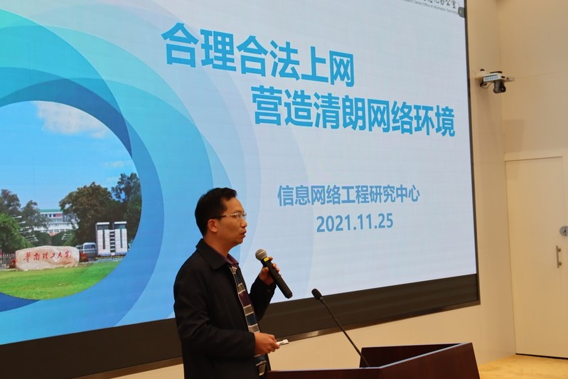 维护校园安全,网络不是法外地。网络安全是国家安全的重要构成和新领域,为提高广州国际校区全院师生的网络安全意识,书院邀请了网络安全和信息化领导小组办公室副主任潘伟锵向同学们开展网络安全主题教育。潘伟锵老师从网络安全相关法律法规出发,向同学们介绍维护网络安全的重要意义和违反网络安全相关规定的严重后果。他提出,书院学子作为广州国际校区“新工科”的学生,要强化风险防范意识,避免受到外界的侵蚀和伤害;同时自身也要合理合法上网,积极营造清朗的学校网络环境生态。