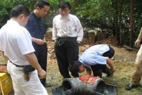 | 甘立丕批阅文件 | 现场组织抢修水电设施(左边第二位) |