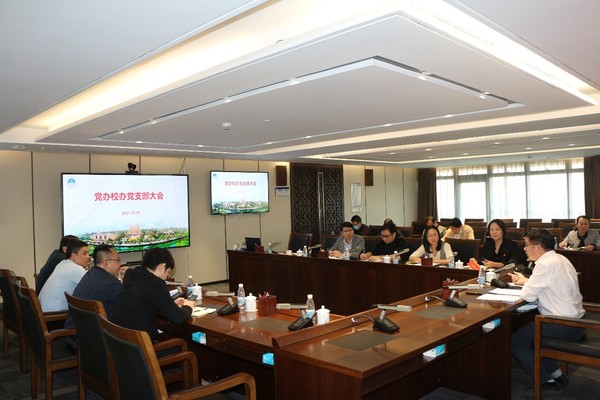12月10日下午,党办校办党支部召开全体党员大会,集中学习党的十九届六中全会精神,讨论党支部近期工作内容,传达相关文件精神。党支部书记雷育胜主持会议,支部全体党员参加会议。