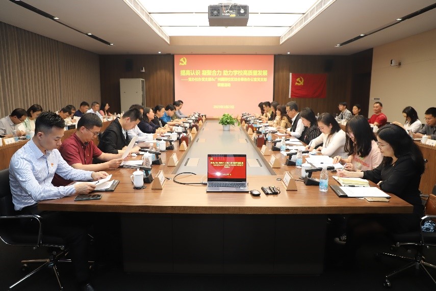 为全面贯彻落实中共中央办公厅《关于在全党大兴调查研究的工作方案》要求,深入贯彻学校推进高质量发展大会暨2023年学校工作会议、全面从严治党工作会议精神,进一步提高认识、凝聚合力,推进党建和业务“双融双促”,不断提升“三服务”工作水平,3月23日下午,学校党办校办党支部(以下简称“两办党支部”)与广州国际校区综合事务办公室党支部(以下简称“综合办党支部”)开展党建联建活动。两办党支部、综合办党支部、广州国际校区各学院(研究院)代表等近40人参加了联建交流会。