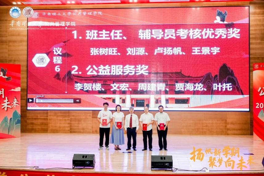 9月14日,学院大部分教职工和新生参加了2025级公管理学院新生开学典礼,对过去一年里在教学、科研、学生工作等方面涌现出来的优秀集体与先进个人进行表彰,颁发了五项奖项,包括2024年班主任、辅导员考核优秀奖、2024年公益服务奖、2024年教学评教奖、2024年度科研突出贡献奖、2024年度考核优秀奖,以激励广大高素质教师不断提升教学科研水平。