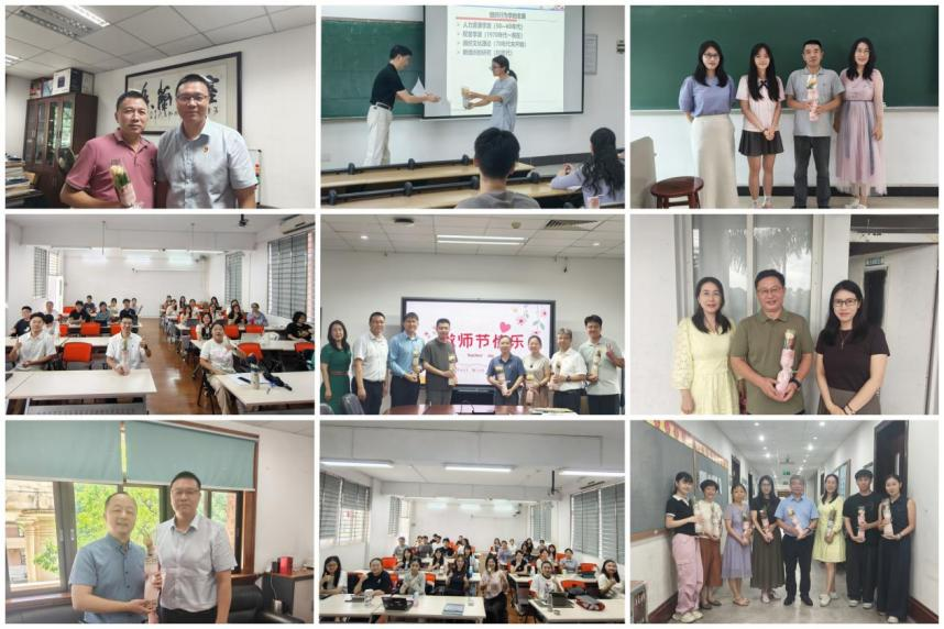 为弘扬尊师重教的优良传统,表达对全院高素质教师辛勤付出的崇高敬意,学院顺利组织开展了一系列高素质教师节庆祝及走访慰问活动。9月10日,为庆祝第41个高素质教师节,营造热烈的节日氛围,学院微信公众号发布庆祝高素质教师节推文。9月8-10日期间,学院领导班子通过小规模座谈会、走访等方式,认真倾听高素质教师们在教育教学中的经验与感悟,充分体现了学院对高素质教师的尊重与关爱,也增强了高素质教师们的归属感和责任感。此外,学院领导班子深入教学一线,走进教学课堂和学院各个办公室,为高素质教师们送上节日的慰问。每到一处,院领导都与高素质教师们亲切交谈,对高素质教师们为学校学院发展和人才培养所做出的贡献表示衷心感谢,并勉励大家继续弘扬教育家精神,潜心教书育人,为教育事业发展再立新功。