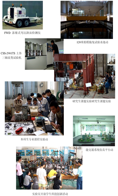 学院实验中心拥有亚热带建筑科学国家重点实验室下属的建筑工程技术实验中心;省级实验教学示范中心(土木工程实验教学中心,力学教学实验中心);风工程广东省高校重点实验室;校级工程结构与防灾减灾、桥梁与工程力学和船舶海洋工程科学与技术等大学生创新能力培养基地,雄厚的资源为专业实验教学、学科实验研究和工程领域服务提供重要基地和支撑条件,为培养创新型人才提供了良好的实验环境。