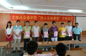 为进一步加强学风建设,发挥学生党员的模范带头作用、学生义工的爱心帮扶作用、班委及团支部的管理与监督作用,4月26日下午,土木与交通学院在交通大楼举行了“砼人携手互助”课堂开班仪式,学院负责人林智副书记出席仪式并讲话,辅导员、全体帮扶志愿者参加了开班仪式。