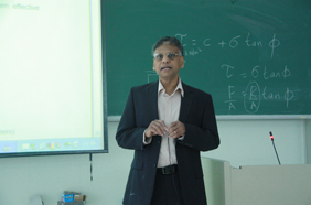 Rajah Gnanendran博士为土木工程系大三学生讲授了《土力学》这门课程,Rajah Gnanendran博士在课堂上旁征博引、语言幽默,同学们不时露出会意的微笑。访问期间,Rajah Gnanendran博士还作了一场题为“软土表现预测和设计”的讲座,并与相关专业师生举行了座谈会。师生普遍反映这是一次很好的国际交流的机会。