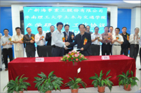 会后在广新海工办公楼一楼大堂隆重举行了广新海工与华南理工大学土木与交通学院产学研合作工作协议签字仪式暨“广东省船舶与海洋工程技术研究开发中心-广新海工装备研究所”挂牌仪式。中山市市委常委冯梳胜以及开发区领导也出席了仪式并作重要讲话。 (图文/土木与交通学院)