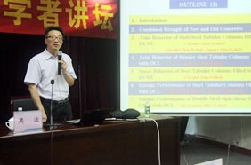 会上,吴波研究员紧密围绕可持续发展、节能减排的主旨,结合其研究团队近年来的研究成果,介绍了大尺度废弃混凝土再生混合构件的基本概念、外置型钢再生混合构件和再生混合钢筋混凝土构件基本力学性能的初步研究成果,以及钢管再生混合柱的工程应用实例。他与在场师生分享了其在高强混凝土结构、碳纤维布加固混凝土结构、隔震装置抗火研究方面的新进展,以及混凝土结构强震落层倒塌的初步研究成果,提出有待进一步研究的方向。期间,吴波研究员还就相关问题与在场听众进行互动交流,一一解答了青年教师及学生提出的问题。