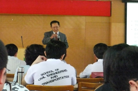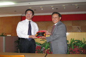 苏成院长给Chi Loong Chow教授颁发纪念品 | Chi Loong Chow教授作报告 |