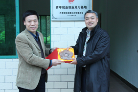座谈后,我院党委赵书记、贾场长和广宁县委组织部李部长共同为“青年就业创业见习基地”揭牌,我院向八一农场赠送了纪念礼物。