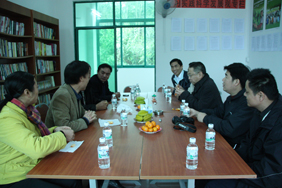 我院领导和老师一行到达农场后,受到八一农场场长、全国劳动模范、十七大主席团成员-----贾东亮、广宁县委组织部李部长等的热情欢迎,我们举行了简短的座谈会。