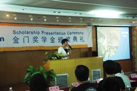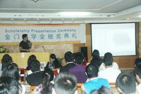 4月25日下午,土木与交通学院2011-2012年金门建筑奖学金颁奖仪式及茶话交流会在交通大楼604学术报告厅举行。金门建筑有限公司采购总监萧洁玲女士等负责人,土木与交通学院苏成院长、张蔚洁副书记、李美春副院长出席了典礼,学院获奖学生、2013年签约金门建筑有限公司的学生和2011级土木工程全英班学生60余人参加了颁奖典礼。