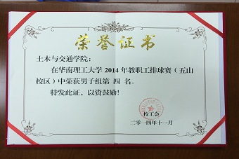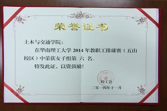 为推动全民健身活动的开展,活跃教职工的文体生活,提高教职工身体素质,土木与交通学院组织罗毅书记为领队的男女排球代表队于2014年10月16日至11月5日参加华南理工大学2014年教工排球赛。经过半个多月的激烈角逐,学院男、女排球队荣获佳绩,男队荣获第四名,女队荣获第六名。