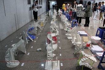 据悉,2014年的比赛主题是“搭青春楼 建梦想梯圆结构梦”。挑战组竞赛主题:承受静荷载的五角大跨度空间结构模型设计,设计要求:用组委会提供的白卡纸、502胶水制作内部跨度为320mm的五角大跨度空间结构模型;趣味组竞赛主题:楼梯设计与制作,设计要求:用组委会提供的白卡纸、502胶水制作垂直距离为400±10mm的楼梯模型。根据前期的参赛报名统计,大约有540支队伍报名参赛,近1600多名同学参与,参赛范围除华南理工大学在校学生外,还包括华南农业大学、广东工业大学、华南理工大学广州学院等相关兄弟院校。
