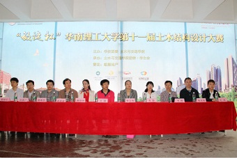 11月8日上午9时,由土木与交通学院、学校团委主办的校园文化品牌活动-----“敏捷杯”华南理工大学第十一届土木结构设计大赛在五山校区逸夫科学馆下正式拉开帷幕。参加此次活动的领导嘉宾有土木与交通学院副院长王湛、学校团委副书记李卫青、大赛官方赞助商敏捷地产媒体品牌部总监潘玲玲、土木与交通学院季静、陈庆军、韦锋、刘幕广、周林仁老师,还有来自广工、广州学院等兄弟院校的老师,以及敏捷地产媒体品牌部嘉宾。