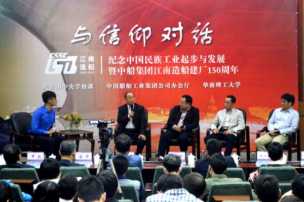 2015年3月26日晚上19点30分,团中央学校部、中船集团主办,学校团委、土木与交通学院承办的---“纪念中国民族工业诞生暨中船集团江南造船建厂150周年活动”之“与信仰访谈”活动在逸夫科学馆报告厅举行。
