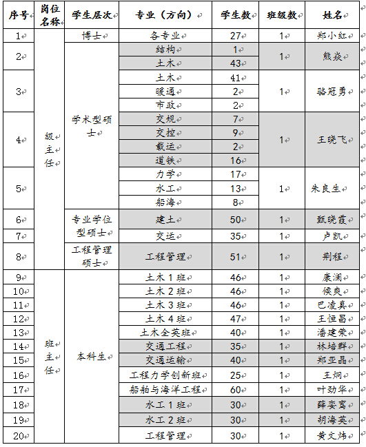 为认真做好2015级研究生及本科生的日常管理和思想政治教育工作,根据学校要求及我院2015年9月新生入学计划,通过各系推荐审议,学院聘用以下19位教师担任2015级研究生级主任及本科生班主任:
