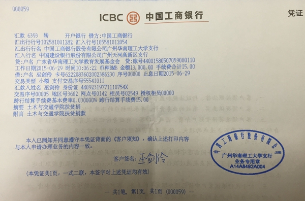 附件:汇款凭证及2015年“广东扶贫济困日”爱心捐款汇总表