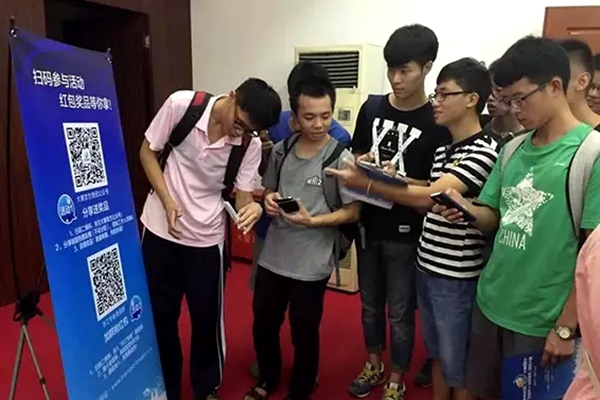 为了活跃现场气氛,谢总和李总还借用时下流行的微信抢红包在现场派发红包,引起广大同学积极参与其中,现场气氛一度达到高潮!