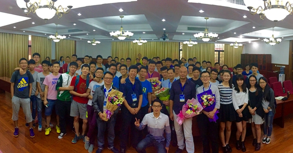 通过聆听五位杰出校友和王湛副院长分享的人生感悟和工作经历,以及与他们的深入交流与激烈讨论,同学们受益匪浅。交流会的最后,全英班“五朵金花”向五位前辈献上鲜花,感谢前辈们亲切且专业的指导。各位前辈和老师们也与参会同学们进行了大合影,此次交流会在这样热烈的思想碰撞中圆满结束。