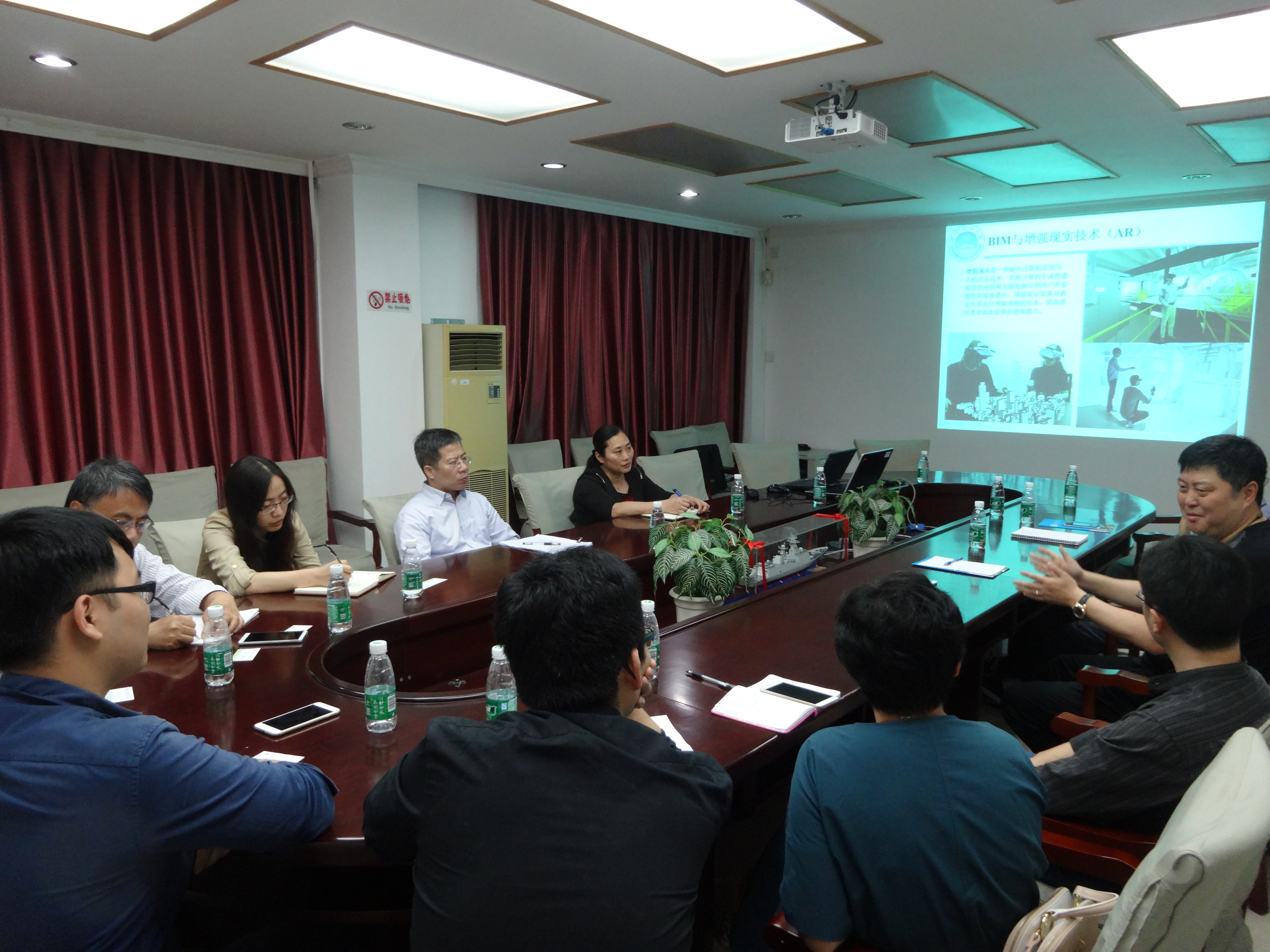 刘董首先介绍了此行目的,并详细介绍了目前建设设计及施工中对建筑信息模型BIM技术的迫切需求以及其实施经验;苏院长介绍了学院的建筑全生命周期管理(BIM)及虚拟现实实验室概况以及研究力量。双方就BIM科研与培训方面的合作进行了交流,并达成合作意向,为后续建筑全生命周期管理(BIM)及虚拟现实实验室的建设稳步推进提供保障。(图文/吴凡 土木与交通学院)