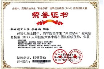 我院学子在第七届高等院校“斯维尔杯”建筑信息模型(BIM)大赛中取得佳绩