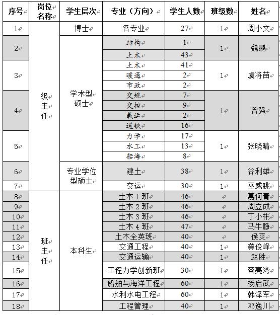 关于聘用周小文等老师担任2016级研究生级主任和本科生班主任通知