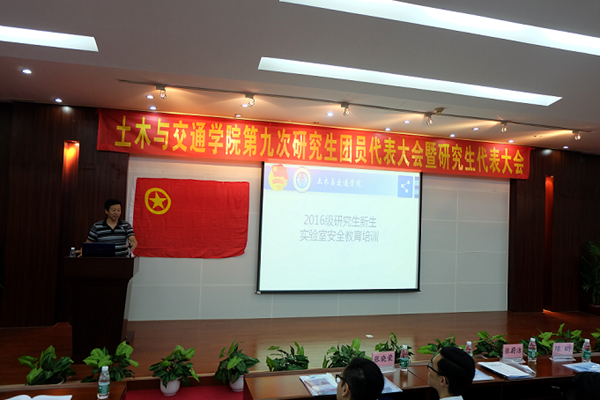 为加强实验室安全管理,确保实验室成为安全的学习和工作场所,9月25日晚上,借学院研究生召开“双代会”之际,土木与交通学院对研究生进行了实验室安全专题教育培训。本次安全教育培训面向我院2016级研究生,邀请了学院主管实验室工作的王湛副院长做实验室安全专题教育,旨在强化学校实验安全管理工作,预防和减少事故发生,保障师生生命、财产安全。