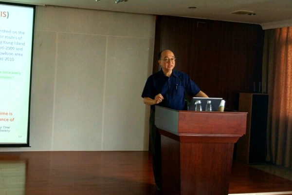 会上,Lam教授首先以一段生动的短片带领大家感受了其基于可靠度的智能交通系统技术在改善香港居民出行领域的最新研究成果与应用示范。详细介绍了基于可靠度的旅行时间估计模型,并集成了RFID、车牌识别和线圈等手段获取的多源交通数据,通过建立可靠的数据融合算法,实现了旅行时间估计误差在20%以内的概率高达95%。然后,Lam教授又介绍了香港理工大学面向全球招收交流学者、博士及博士后的申请资格及奖学金设置情况。最后,Lam教授采用生动、幽默的语言与大家分享了如何做学问和如何撰写高水平论文的经验,并对大家寄予了厚望。