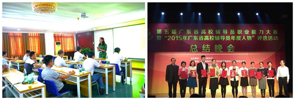2016年本科生辅导员张冬利申报国家教育部思想政治课题1项并获得立项支持,提交的论文荣获2016年度全国辅导员工作优秀论文一等奖(全国18篇);本科生辅导员郭瑞玉获得广东省辅导员职业能力竞赛一等奖(我校目前最好成绩)。