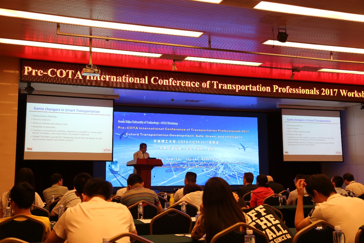 2017年7月4日,由华南理工大学土木与交通学院与海外华人交通协会(COTA)联合主办的“华南理工大学COTA会前会(Pre-COTA International Conference of Transportation Professionals)”在大学城中心酒店顺利举行。此次会议吸引了国外各优秀学府及国内来自华南理工大学、中山大学、吉林大学、哈尔滨工业大学、广东工业大学、广州大学等学校的80余人参会。本次会议主旨是未来交通的发展,包括安全、绿色、智能。