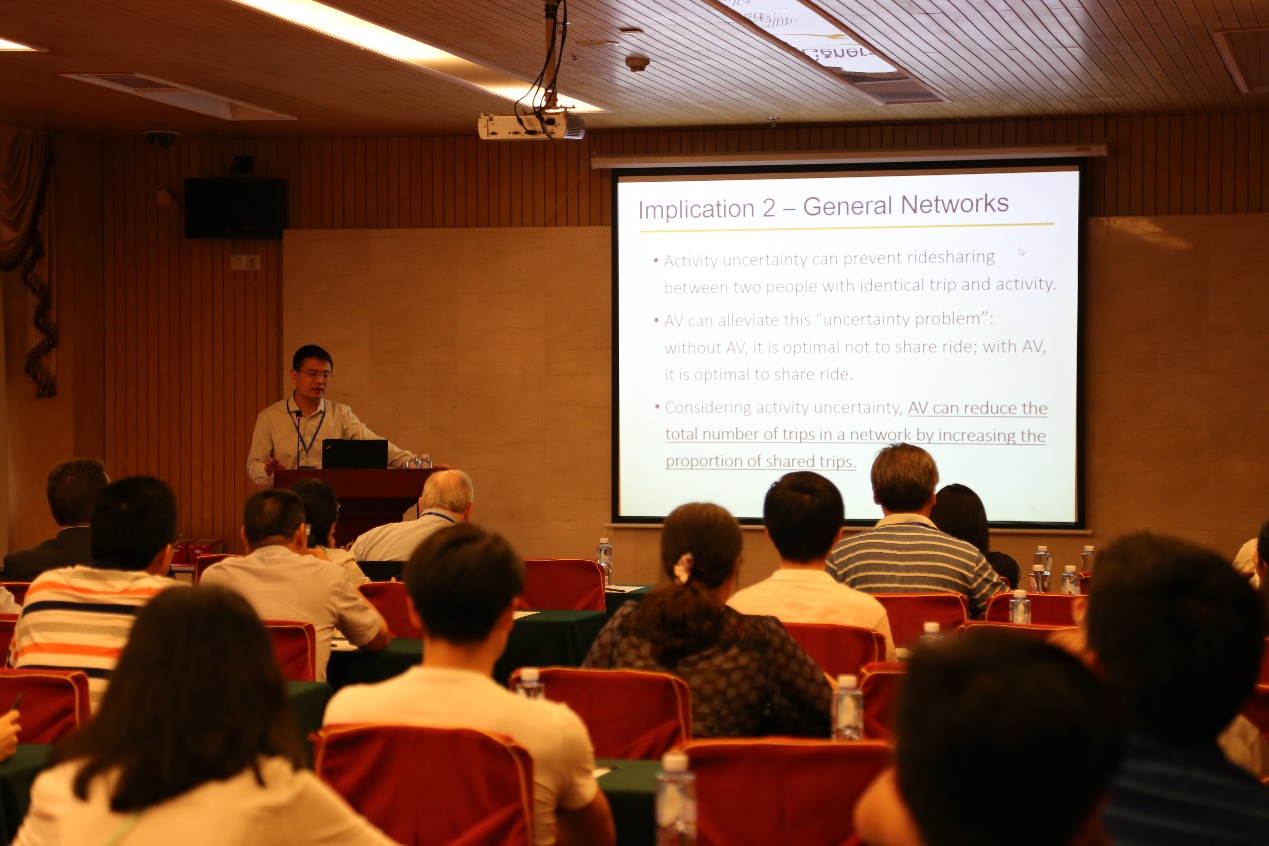加拿大温莎大学郭晓雷副教授作“考虑活动时间不确定性的无人驾驶车辆共乘研究”主题报告,分析了无人驾驶车辆在解决活动时间不确定性带来的共乘困难方面的优势,提出了两个场景来证明自动驾驶车辆对于共乘的促进性。