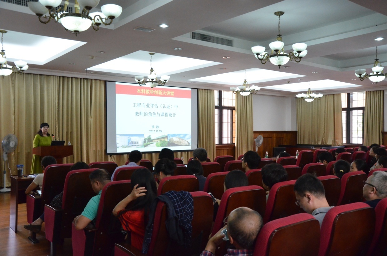 10月19日下午,土木与交通学院在7号楼二楼报告厅举行本科教学创新大讲堂报告会之一,学院广东省教学名师季静教授作了题为“工程专业评估(认证)中教师的角色与课程设计”的报告。参加报告会的除了土木与交通学院的教师外,还包括承担部分公共基础课和学科基础课的外学院教师(包括外国语学院、物理与光电学院、化学与化工学院、设计学院、工商管理学院、计算机科学与工程学院、军事教研室)。