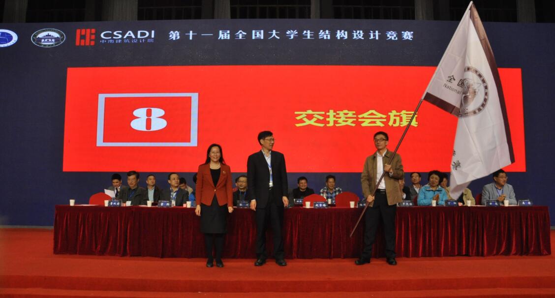 闭幕式上,吴波院长代表我校从全国大学生结构设计竞赛委员会秘书长手中接过会旗,象征着我校竞赛筹备工作正式拉开帷幕。