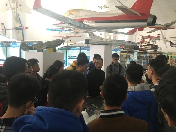 大家首先参观的是陈列着各式各样飞机模型的航模工作室。何老师向大家介绍了飞机的发展历史,以及为适应需求和技术发展而进行的外形演化过程。结合相关力学知识,同学们了解了飞机起飞、飞行和降落时为保持平衡和控制高度与航向的基本操作方法。